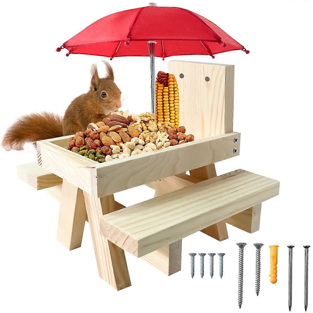 Squirrel Feeder for outdoor Wooden Squirrel Picnic Table Outside with Umbrella Corn Cobs for Squirrel Gift Beige