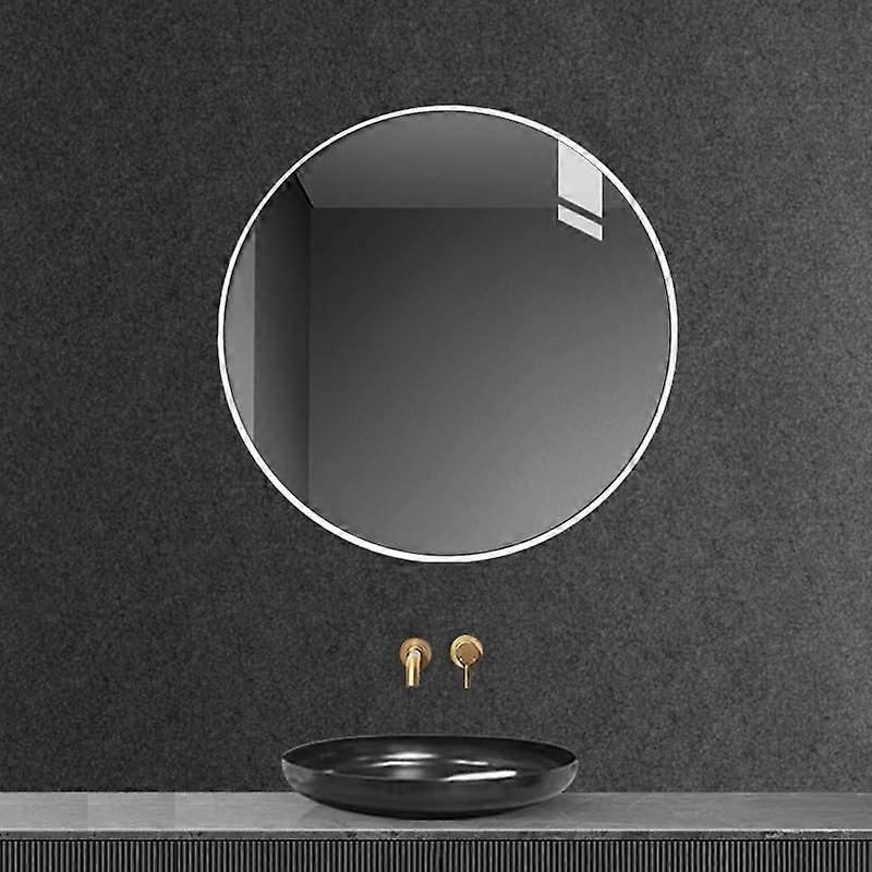 Round Bathroom Mirror WallMounted Aluminum Alloy Makeup Mirror NoDrilling Design White 80 X 80 Cm