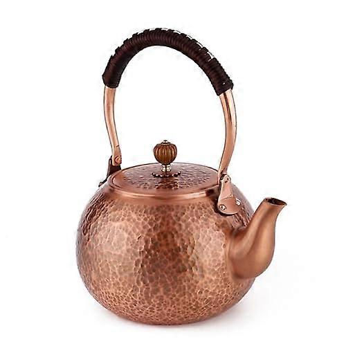 Exceptional Craftsmanship: Our copper teapot is masterfully crafted using traditional hammer pattern techniques. With fine workmanship, a textured surface, and durable construction, it delivers wear resistance and strong thermal conductivity for a brewing experience. Copper Material: Made from quality copper, it provides uniform thermal conductivity for heating. This helps enhance the flavor of your tea while releasing trace copper ions that can contribute to wellbeing. Comfortable AntiScalding Handle: The handle is wrapped in cotton rope to provide antiscald and antislip features. Its ergonomic design adds aesthetic appeal and ensures comfort during use. Integrated Filtering System: The arcshaped spout ensures smooth water flow, and the builtin filter prevents tea leaves and particles from entering your cup, ensuring a clean, satisfying brew every time. Use scenarios: Daily home tea brewing: enjoy consistent heating and flavor with every pour. Entertaining guests: delivers clean pours and a touch of traditional craftsmanship during tea time. Brewing looseleaf or herbal teas: the builtin filter helps keep leaves out of your cup for a smooth, clog brew.