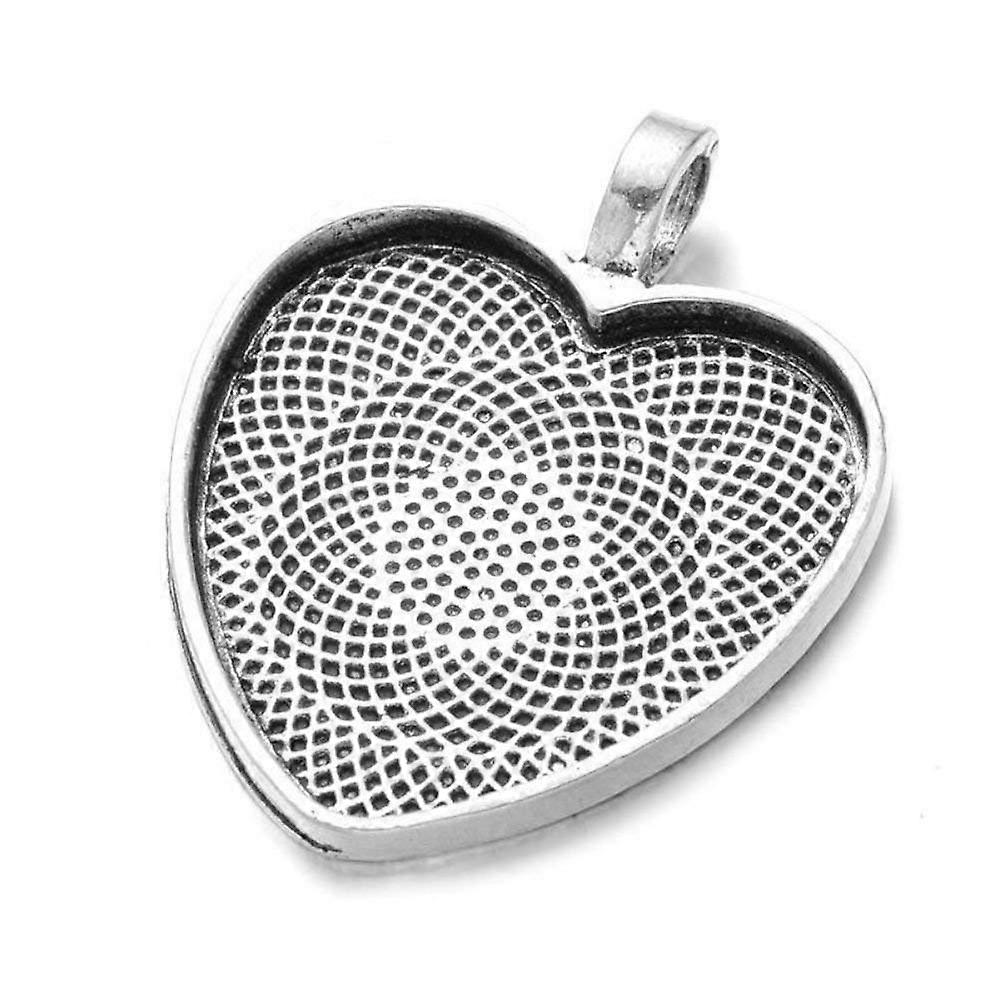 Antique Silver Heart Shape Pendant Tray 25mm (1 Inch) Diameter, 24 Pcs, Cameo Bezel Cabochon Settings For Photo Charm