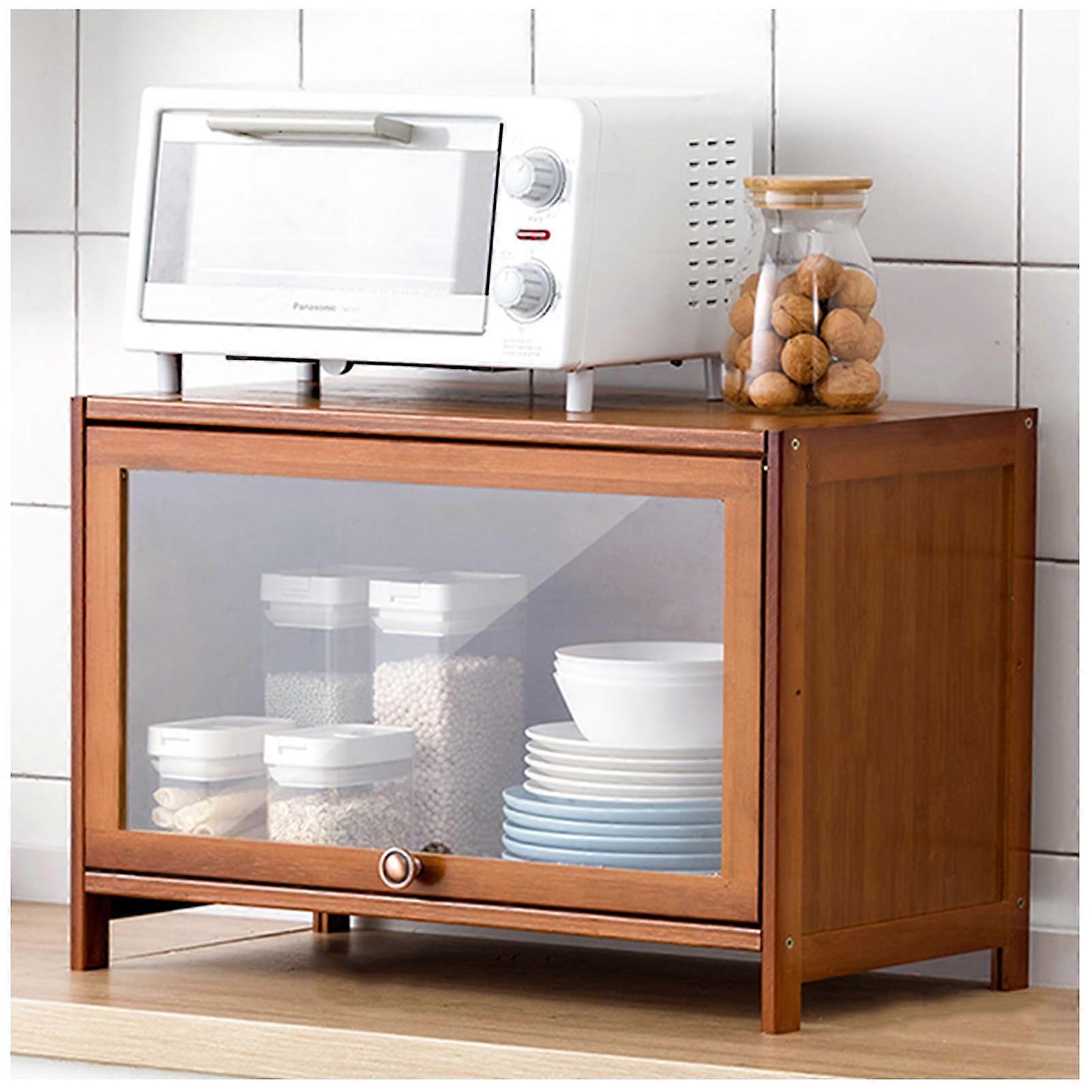 Freestanding Pantry Cabinet Bamboo Tall Kitchen Storage With Flip Hovering Door, 60x40cm (23.6x15.7in), Utility Pantry