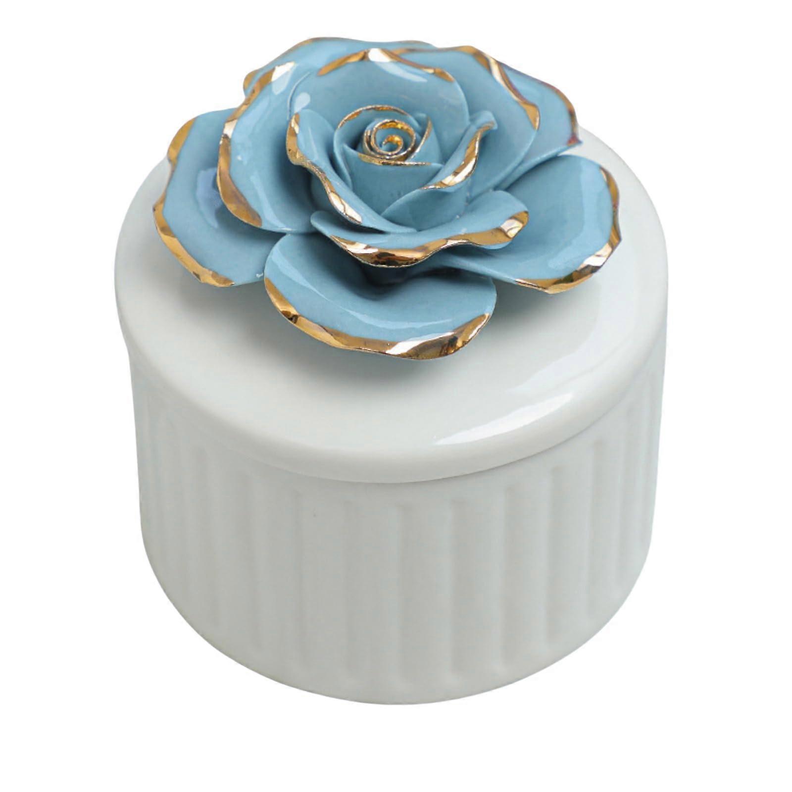 Ceramic Storage Box Flower Shaped Jewellery Box Blue Ceramic Spice Jar Round Coin Tin Key Jar