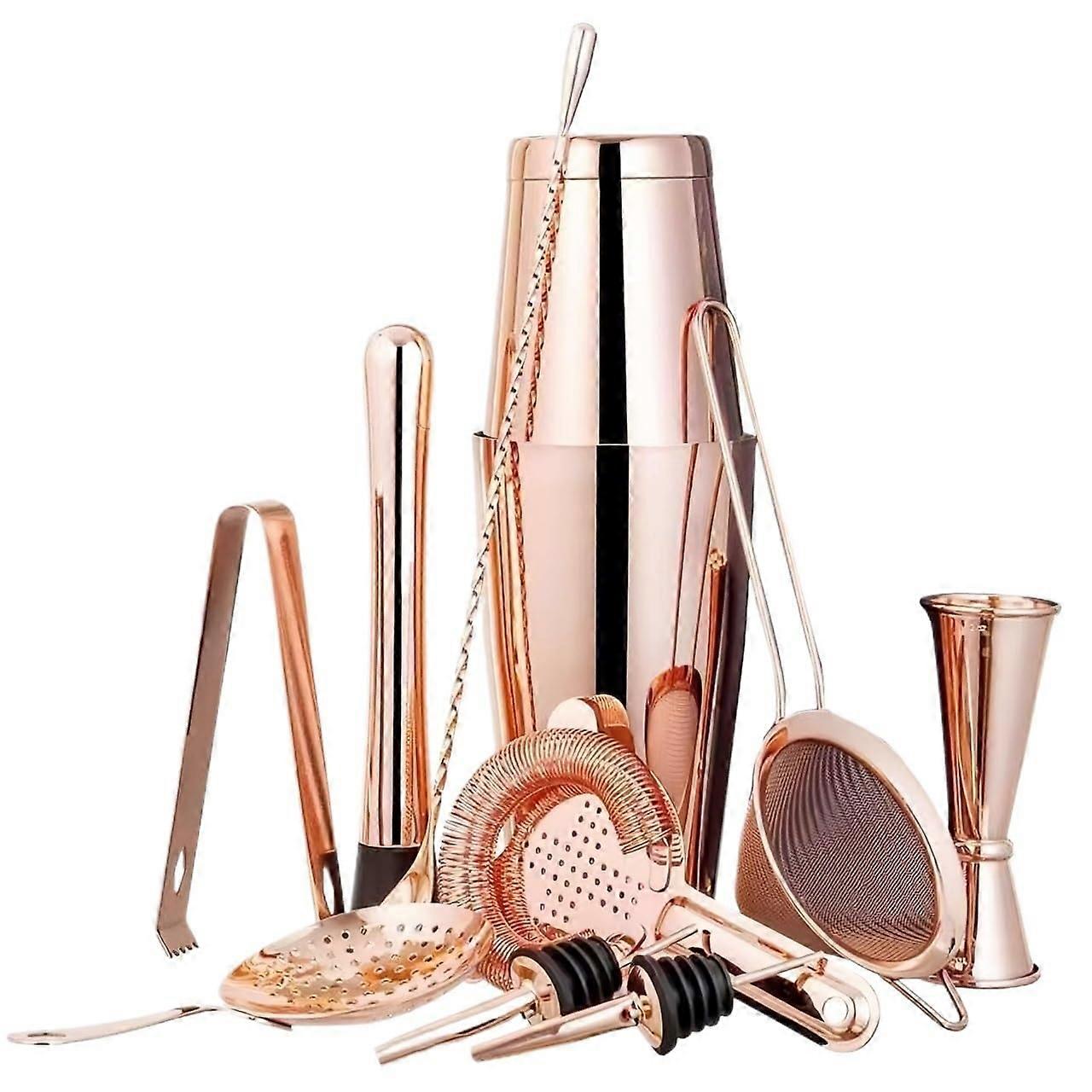 Cocktail Shaker Set Stainless Steel Electroplated Rose Gold 11 Piece Bartender Kit with Absinthe Spoon for Home Bar and Party