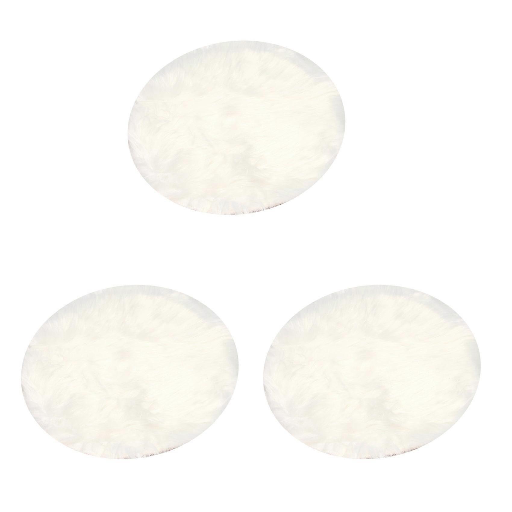 3X Faux Sheepskin Wool Carpet 30 x 30 cm Fluffy Soft Longhair Decorative Carpet Cushion Chair Sofa Mat (Round White)