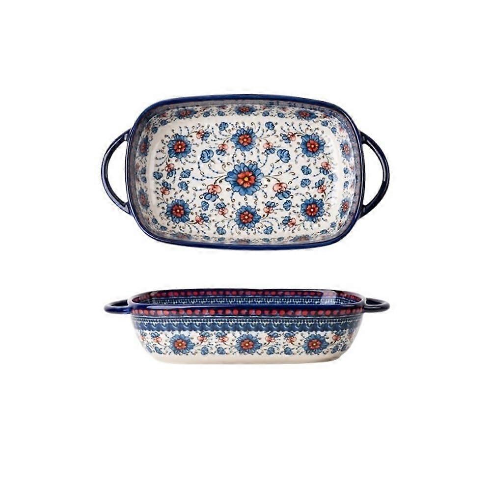 Ceramic Baking Dish 730 ML Capacity Vintage Ceramic Tableware Household Handle Bowl Double Ear Baking Tray
