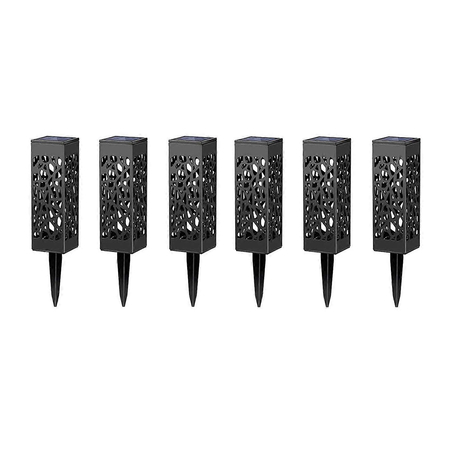 6 sets of modern IP65 hollow black outdoor lawn lights designed for decoration and security lighting with solar power. Suitable for lawn, garden, fence, balcony and other outdoor spaces. Key benefits Wireless solar operation with no wiring required Weatherproof ABS construction for outdoor use Provides both illumination and ambiance with multiple color temperatures Covers a practical lighting area of 35 square meters Material and size Material: ABS, color uniform, waterproof and rust resistant in rain Shade dimensions: length 5.9 cm, width 5.9 cm, height 18 cm Overall height: 28 cm Detailed specifications Battery: 300 mAh NiMH Solar panel: 0.2 W monocrystalline silicon Light source: LED lamp beads Color temperature: 3000 K (warm white) or 6000 K (cool white) Charging time: after turning on the switch, place in sun for more than 6 hours Working time: 810 hours Applications Outdoor lighting area: 35 square meters Ideal for outdoor space design such as lawn, garden, courtyard, villa, fence, balcony, community and other outdoor areas Usage notes Solar powered and maintenance ; ensure the switch is turned on and the lights receive adequate sunlight for charging.
