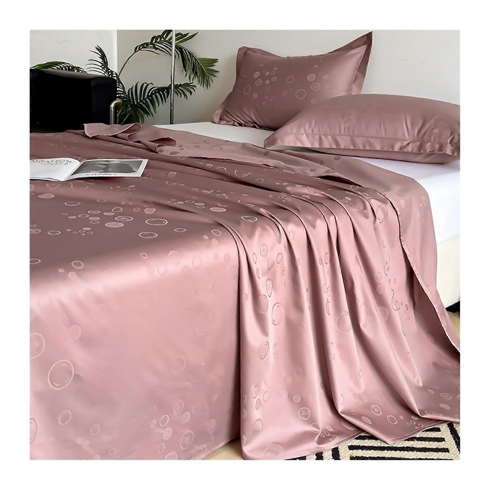 100% Long Staple Cotton Jacquard Flat Sheet, Queen King Size, Pink, Breathable Sateen Weave, 245x270cm And 48x74cm x2