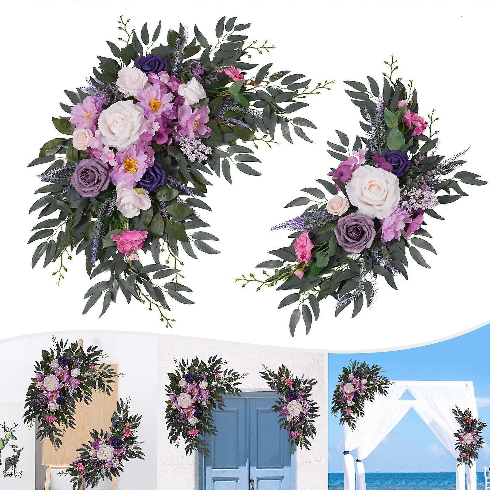 2pcs Set Wedding Arch Artificial Flowers Pink Purple, Party Ceremony Wall Hanging Curtains Indoor/ Outdoor Decor Kit