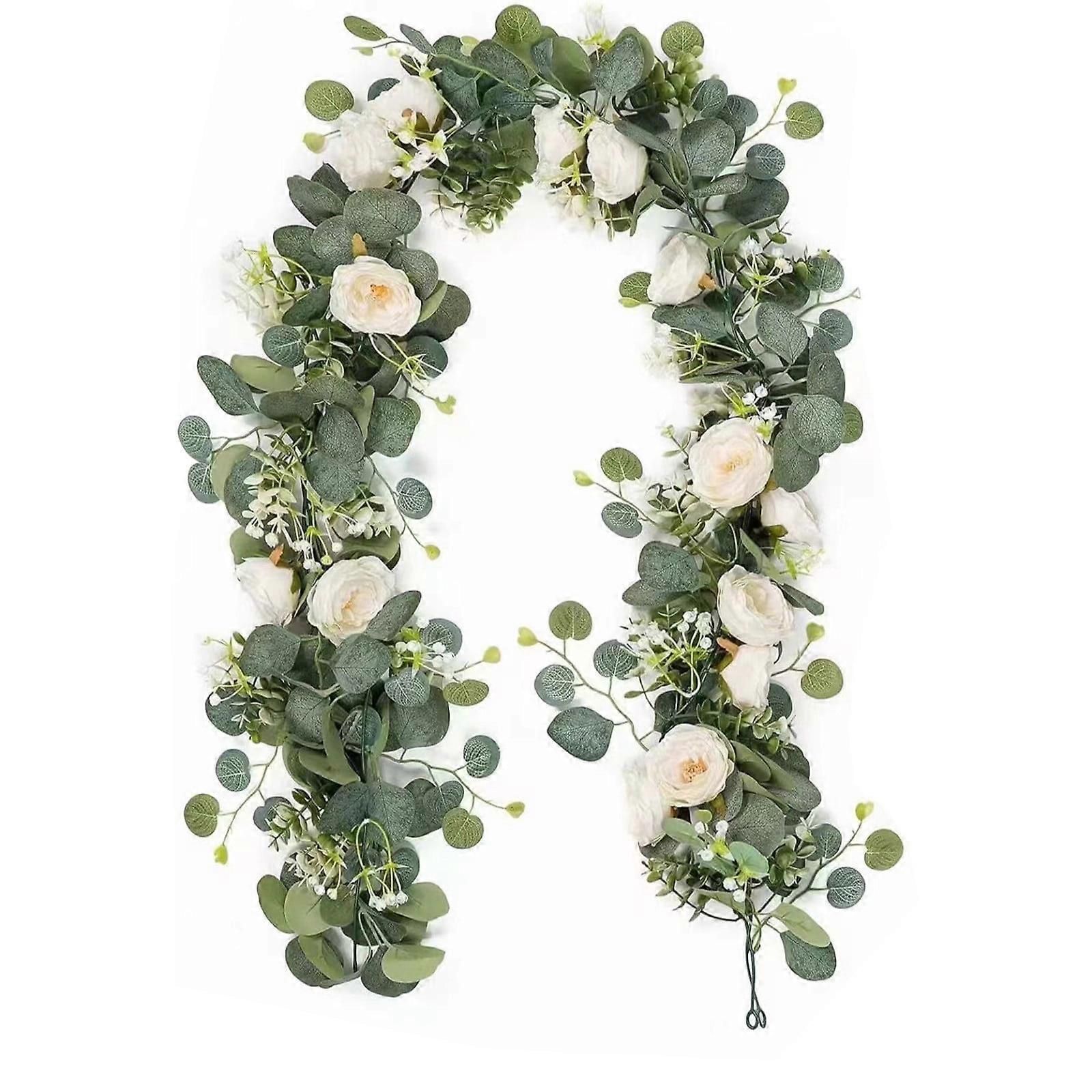 4 Pack 6FT Artificial Eucalyptus Garland with White Roses, Fake Floral Vines for Wedding Home Party Table Decor