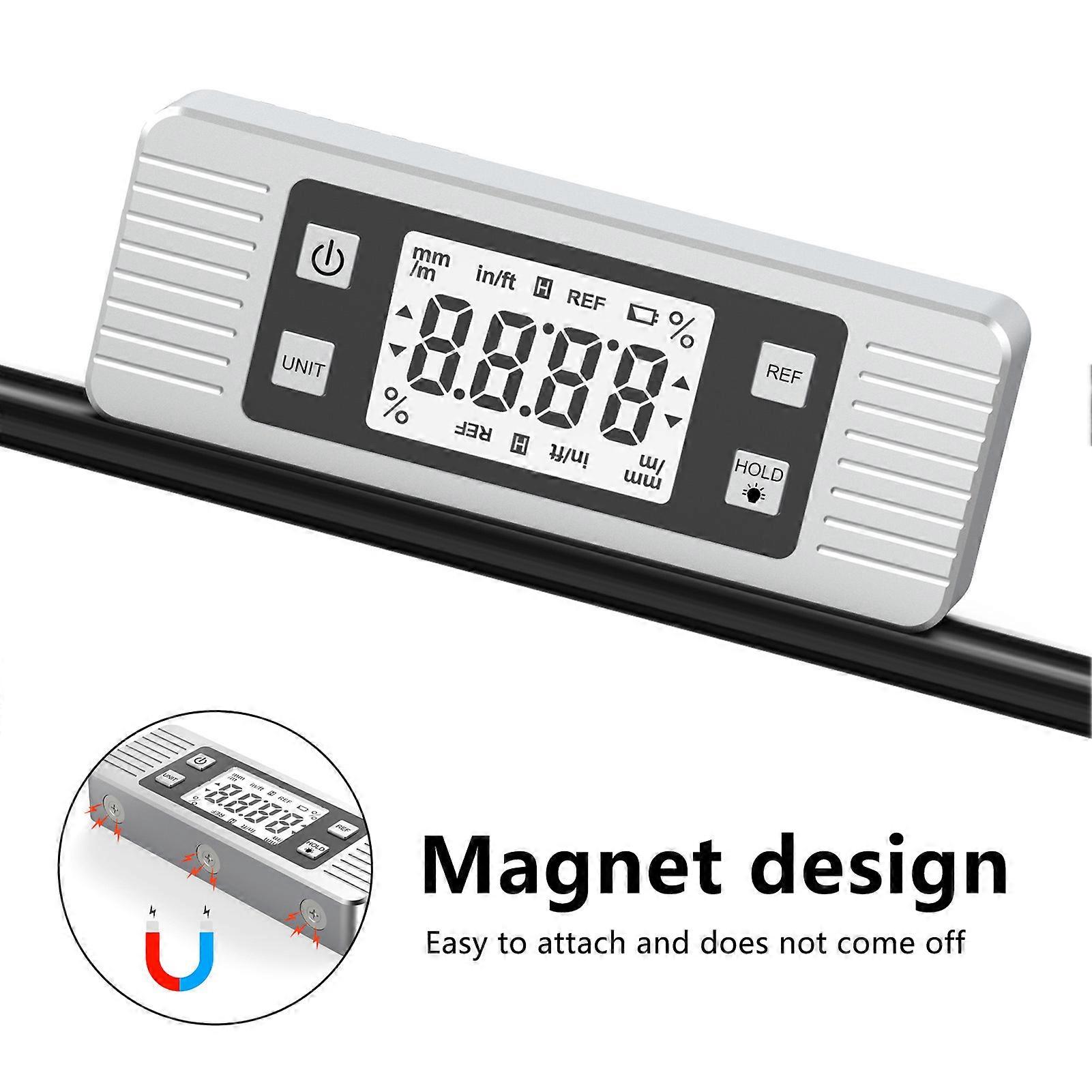 SUSUchens Digital Protractor Magnetic Angle Finder Portable Design Compact Size 360-Degree Electronic Level Angle Gauge Woodworking Tool Silver