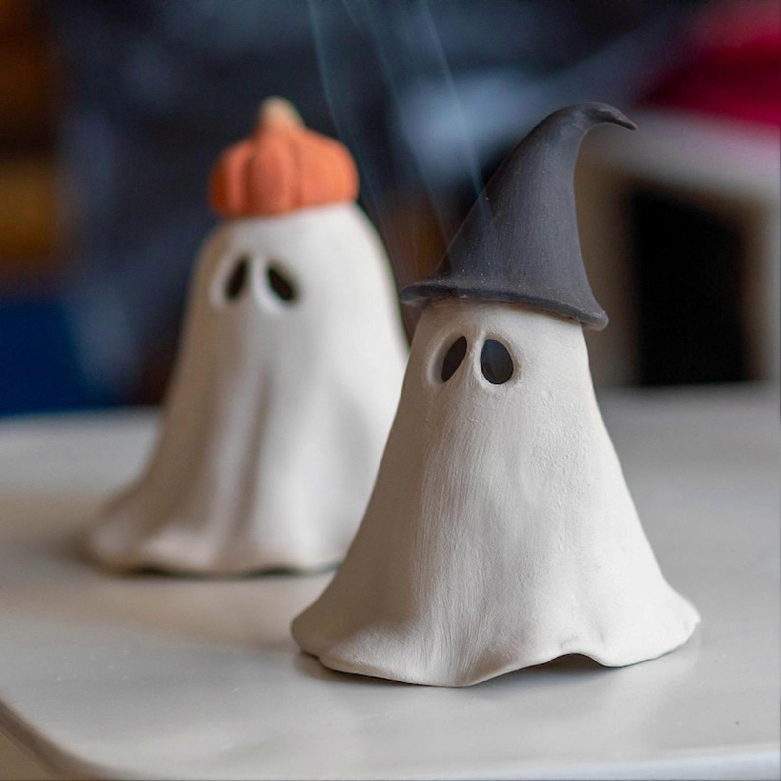 SUSUchens Halloween Ghost Incense Holder Resin Ghost Pumpkin Witch Hat Scent Aromatherapy Burner for Home Bedroom Livingroom Decoration Style A