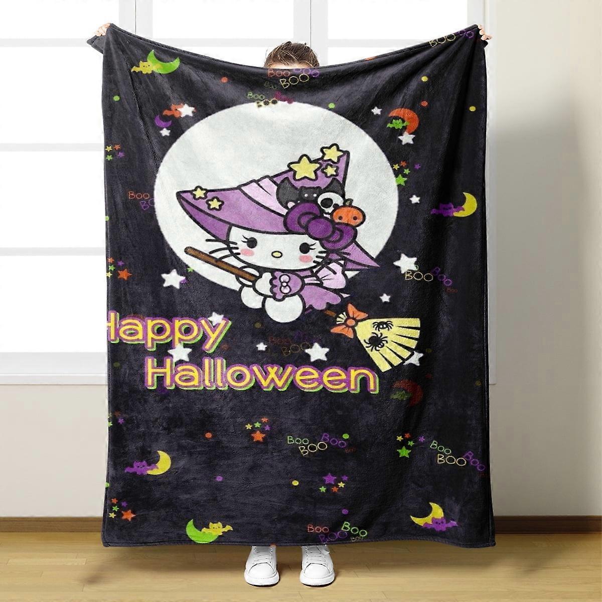 Halloween Hello Kitty Throw Blanket Cute Cartoon Kuromi Ultra-Soft Flannel Fleece Warm Couch Sofa Bed Living Room Blanket for Kids Adults 50*60 C-6