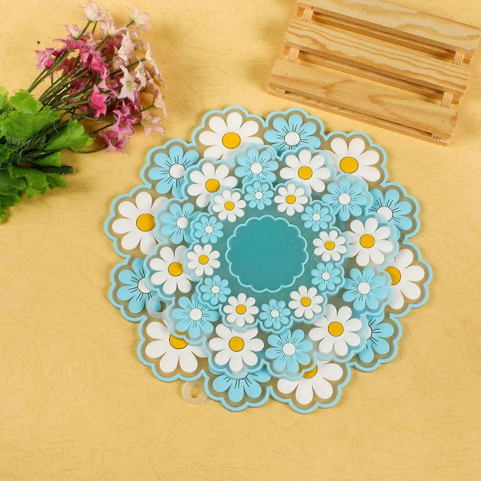 FensXil Placemat Silicone Heat Insulation Mat Pvc Flower Table Mat High Temperature Non Slip Pot Mat Bowl Mat Pink Blue