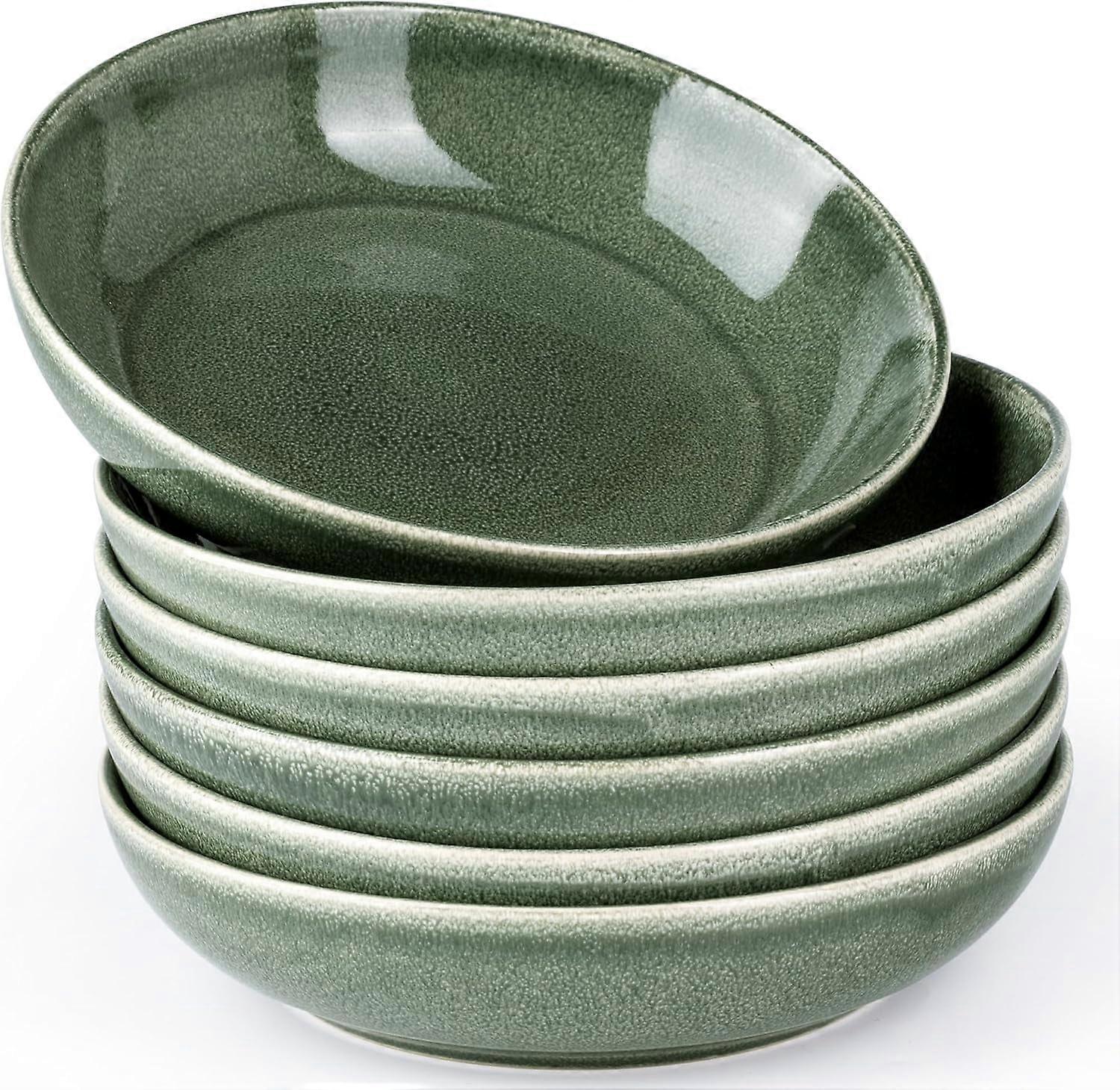 8.5'' Large Ceramic Pasta Bowls Set of 6, 36oz Stoneware, Reactive Glaze, Microwave & Dishwasher Safe for Pasta, Salad, Oatmeal - Jade Green