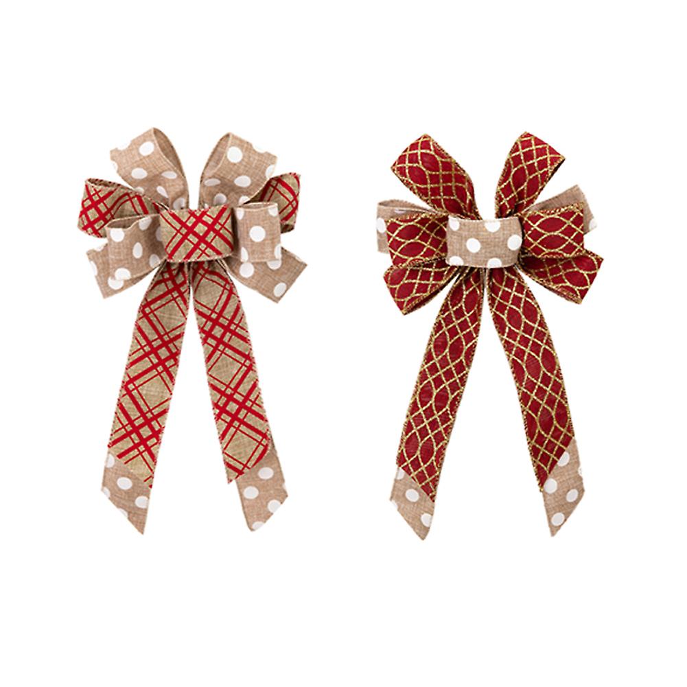2 PCS Christmas Tree Bows for Wreaths, Buffalo Plaid & Burlap Bows, compatible with Fall Thanksgiving Decor, Indoor Outdoor Wall, Front Door