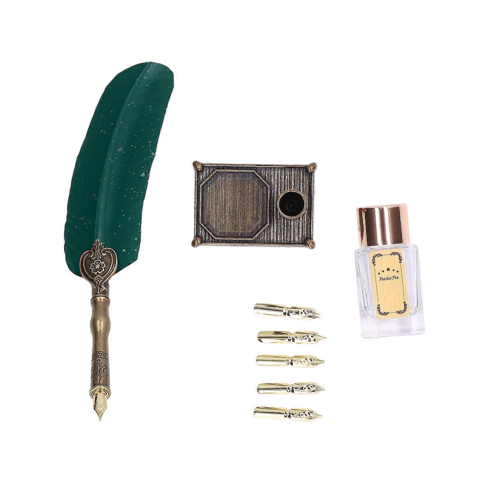 Sprinkle Gold Luxury Vintage Style Quill Feather Pen with Base Nibs Ink Bottle for Calligraphy Gift