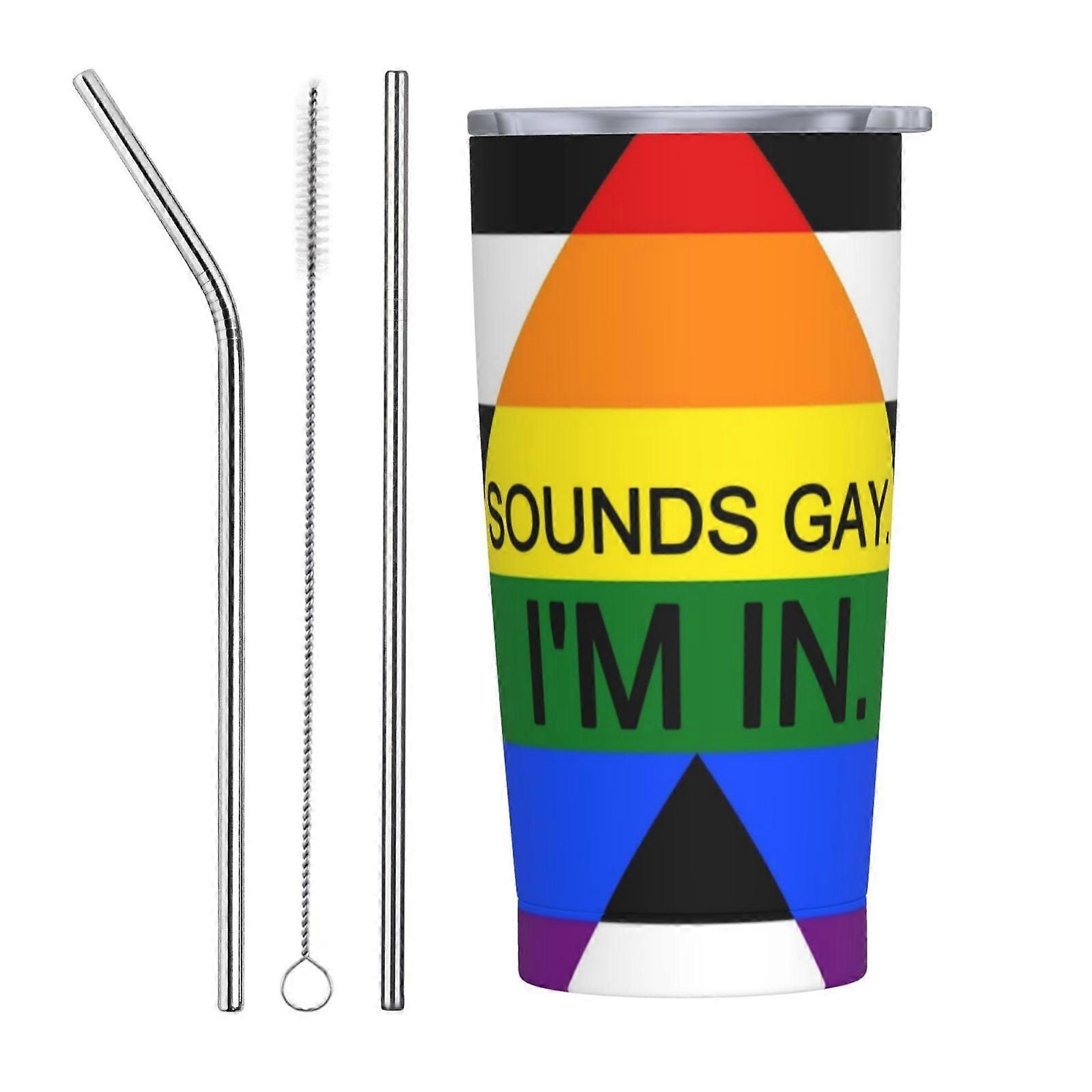 Lgbtq Sounds Gay. I'M In.. 20 Oz Insulated Stainless Steel Coffee Travel Mug With Straw Portable Thermal Cup Straw Three-Piece Set