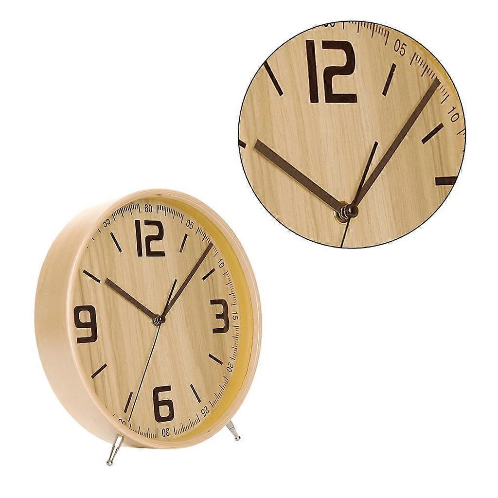 Apooke Wooden Table Clock with Arabic Number 8Inch Quiet Desktops Clock Battery Operated Modern Simple Wall Clock for Bedroom