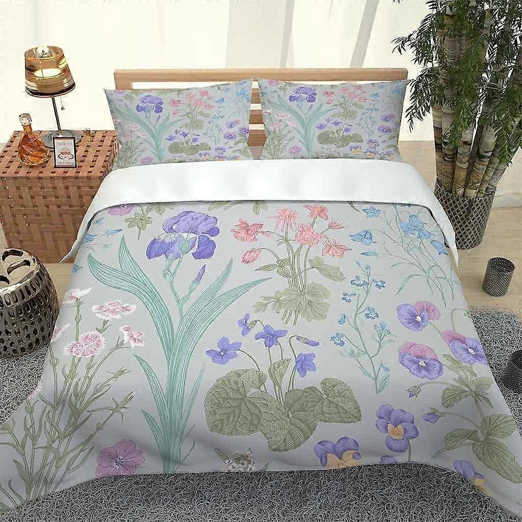Duvet Cover Set Double Bed 3Pcs 3D Printed Flowers Pattern Soft Duvet Cover with Zipper Closure and 2 Pillowcases Easy Care Bedding Sets