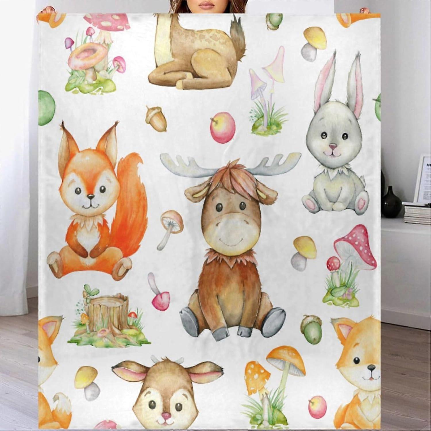 50x60" Soft Flannel Throw Blanket for Couch - Cute Watercolor Fox & Rabbit Design, Lightweight Warm Fuzzy Fleece for Bed, Sofa, Chair