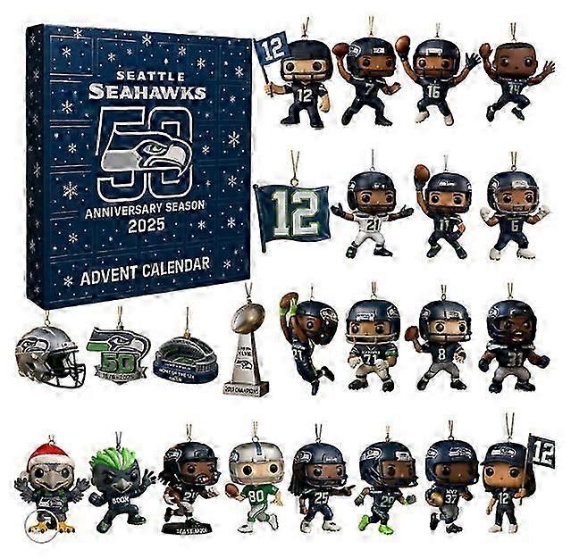 Seattle Seahawks 50th Anniversary Countdown Holiday 24-day Blind Box Christmas Tree Decoration Acrylic Pendant -CAN