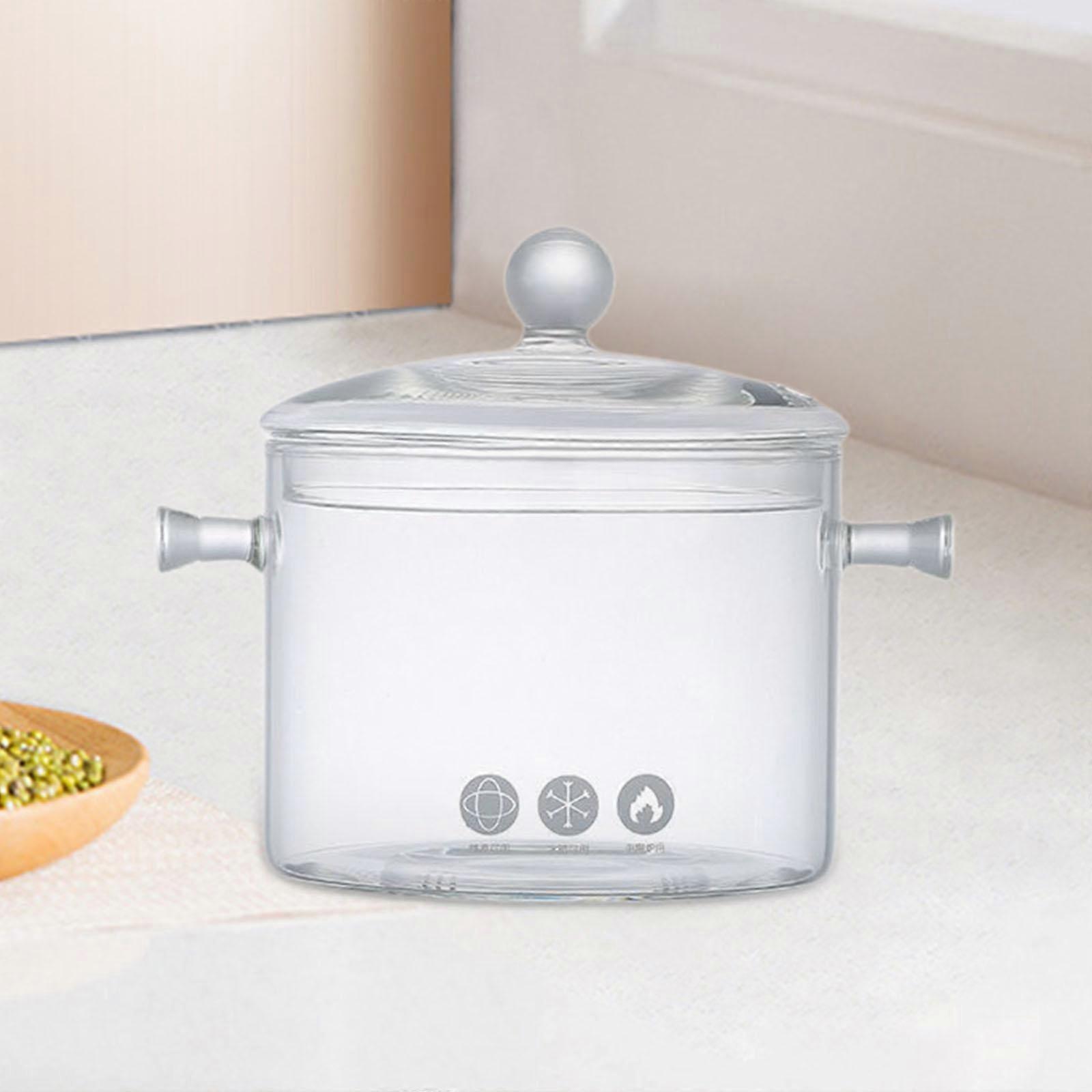 LOVIVER Glass Cooking Pot with Lid Glass Pot Set Multifunctional Cookware Stovetop Pot for Fruits Camping RV Travel Kitchen Breakfast , clear 1300ml