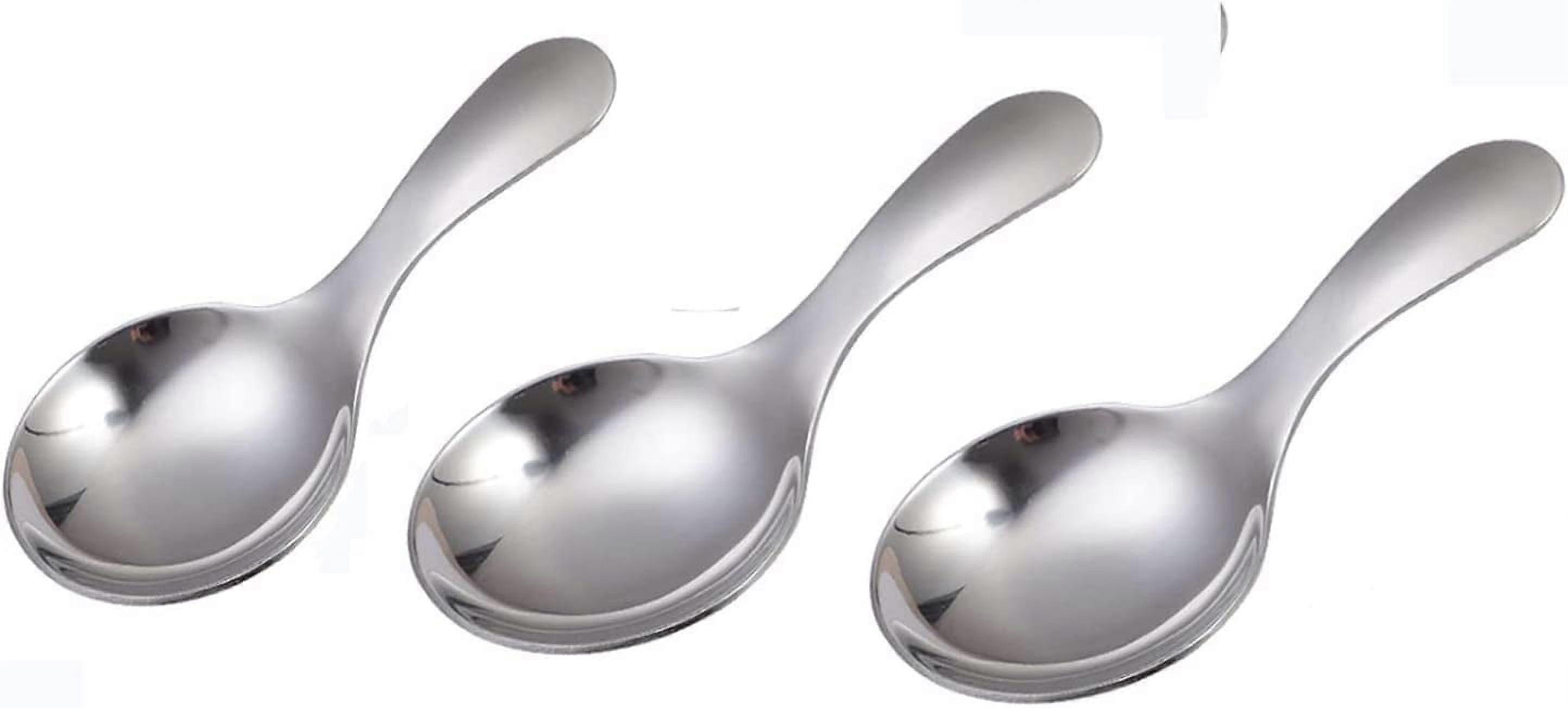 3Pc Short Handle Dessert Spoons, Stainless Steel Condiment Scoops for Sugar, Salt, Spice, Tea, Coffee, Kids - Silver 9x4.5cm