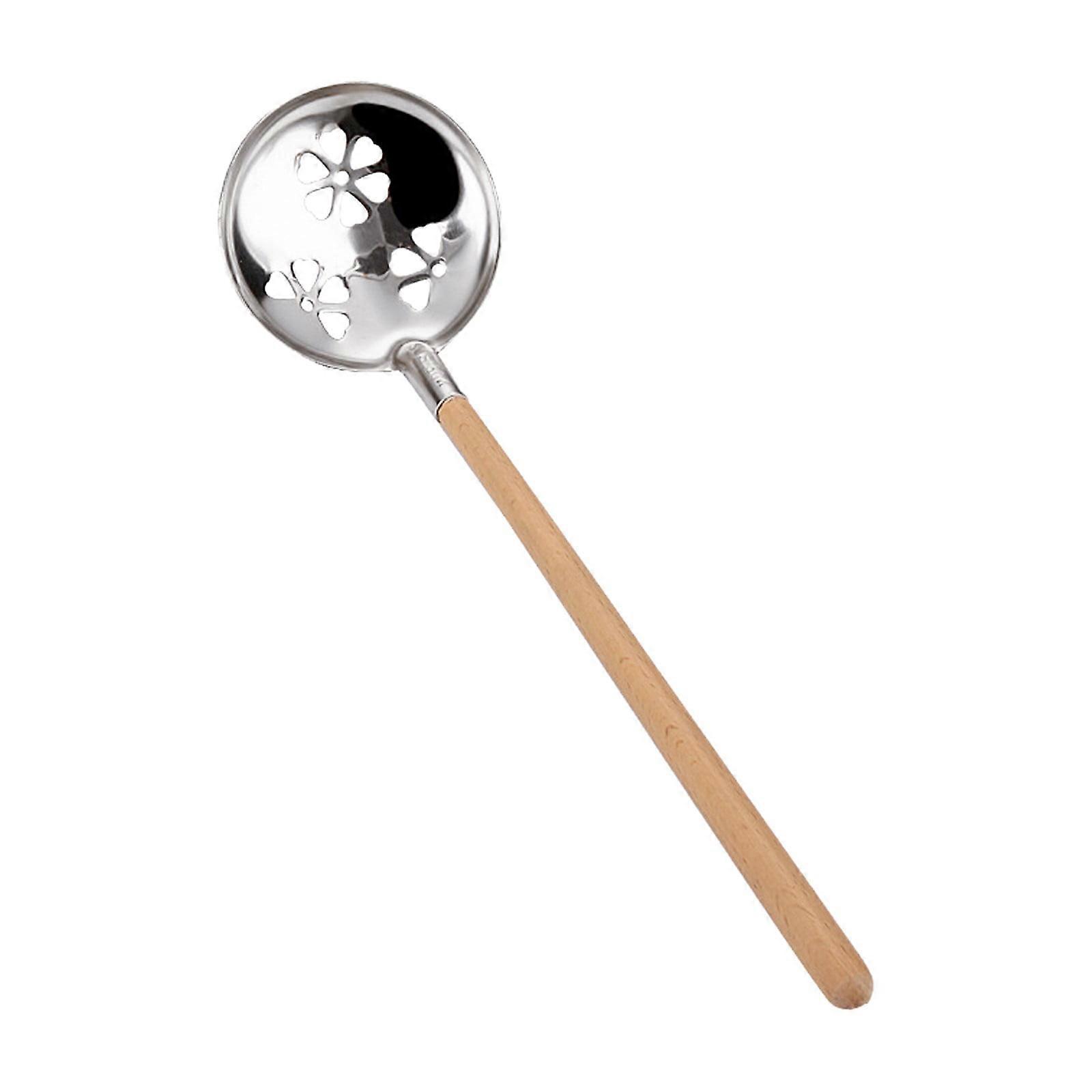 XIUH Kitchen Supplies,Kitchen Tools Wooden Handle Hot Pot Spoon 304 Stainless Steel Soup Spoon Anti Hot Handle Colander (Silver)