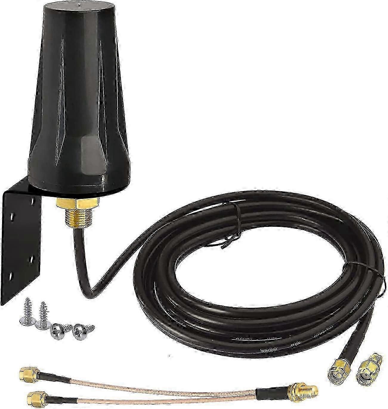 4G LTE Outdoor Antenna SMA Male 5dBi Waterproof Fixed Mount with SMA-F to Dual SMA-M Splitter Cable Compatible with GSM 3G 4G LTE Cell