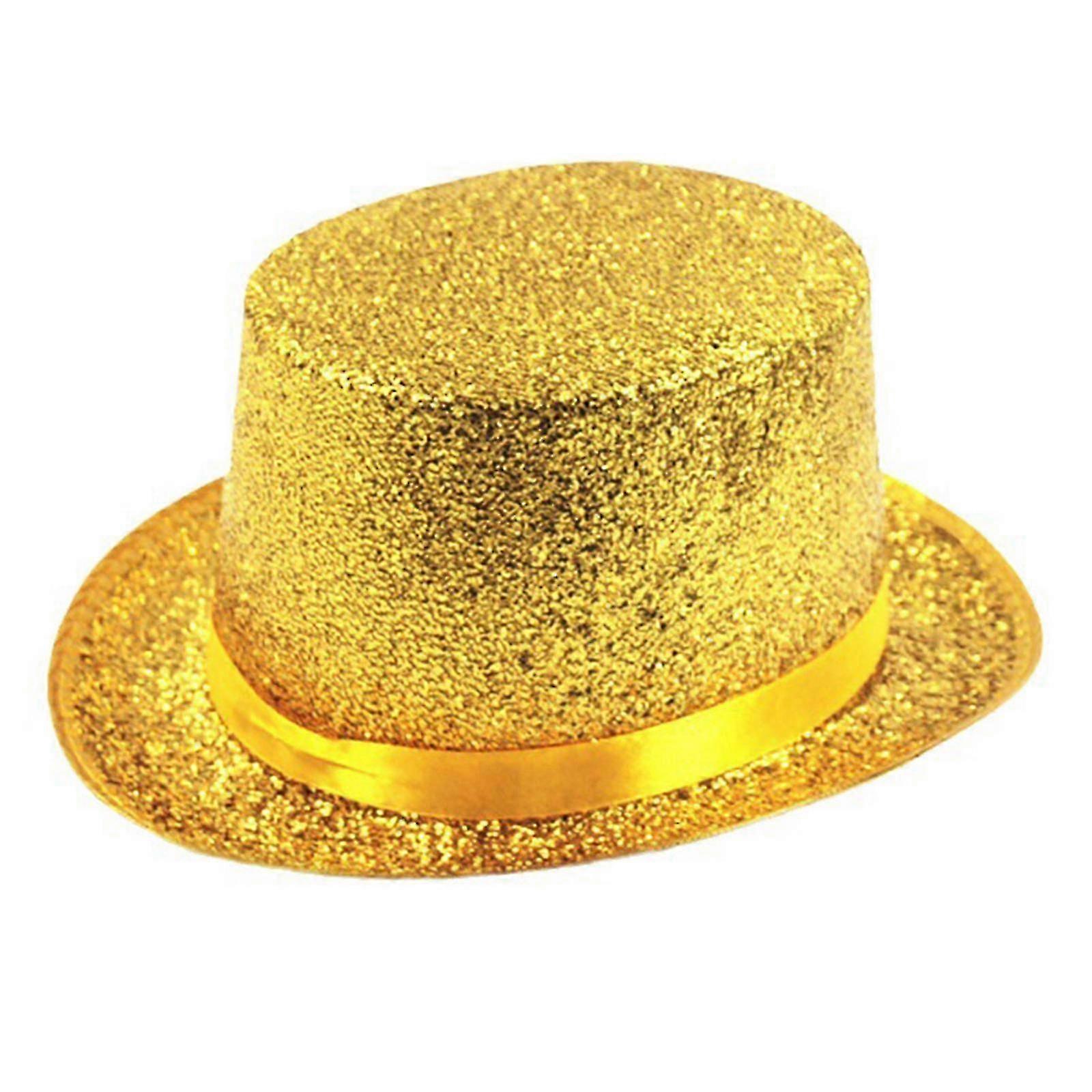 Modern Fedora Top Hat Victorian Age Blingbling Short Brim Top Hat Flickering Glitter Magician Hat for Holiday Stage Gold Adult version