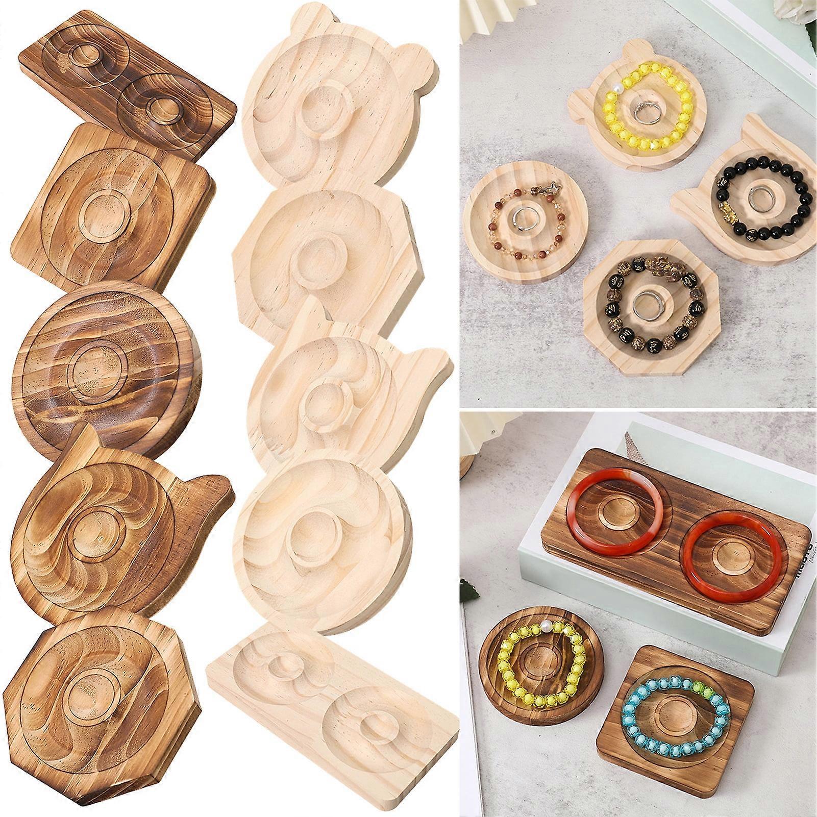 Wooden Bracelet Holder, Round/Square/Rectangle, Rustic Heavy Duty Solid Wood Beaded Bangle Jewelry Organizer Display Stand Plate Style Compatible