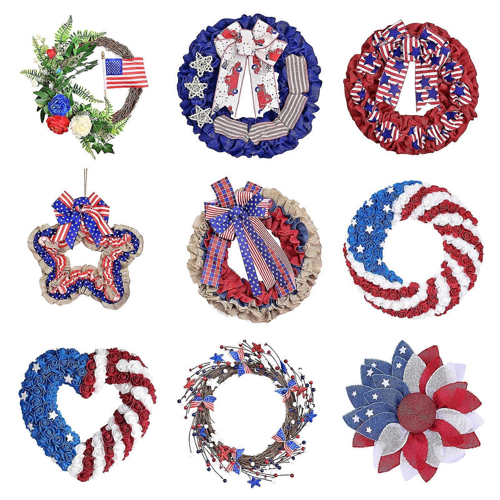 SUSUchens Independence Day Garland Heart Star Pattern Bowknot Decor Artificial Flower Door Hanger Blue White Red USA Themed Hanging Plaque Style F