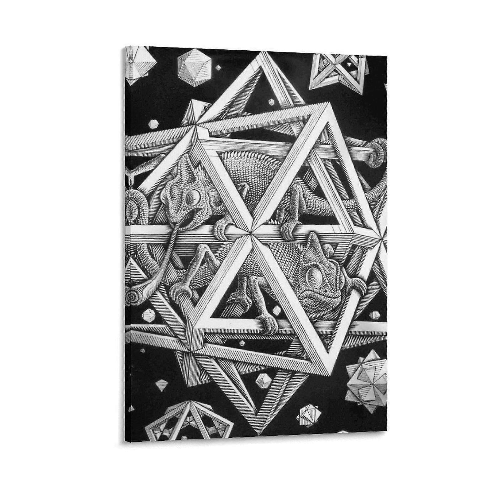 MC Escher Abstract Black & White Print, 8x12in Canvas Art, Modern Wall Decor, Poster Gift (20x30cm)