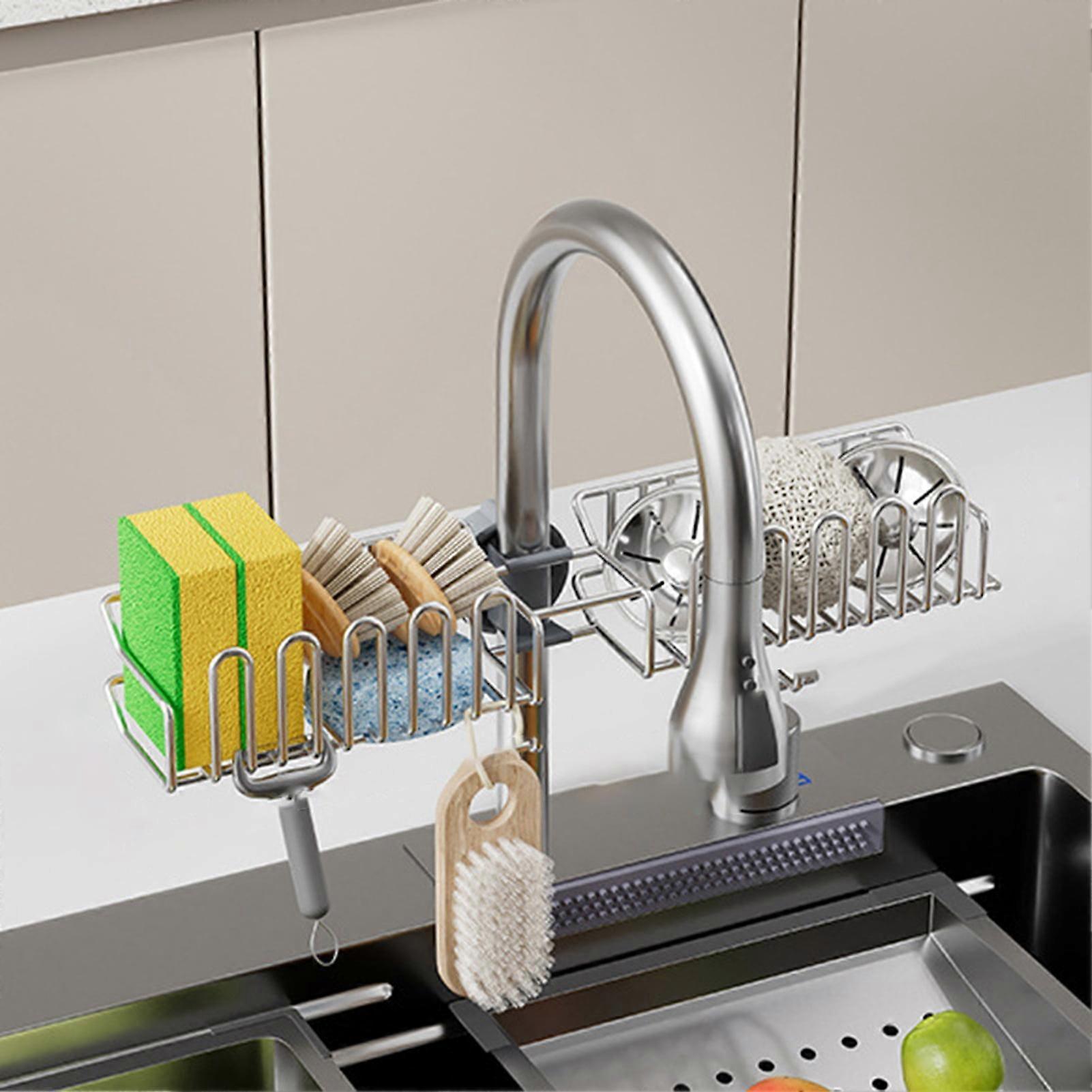 SUSUchens Kitchen Sink Faucet Organizer Storage Rack Rustproof Corrosion Resistant Ventilated Design Kitchen Sink Caddy Organizer with Hook Style C