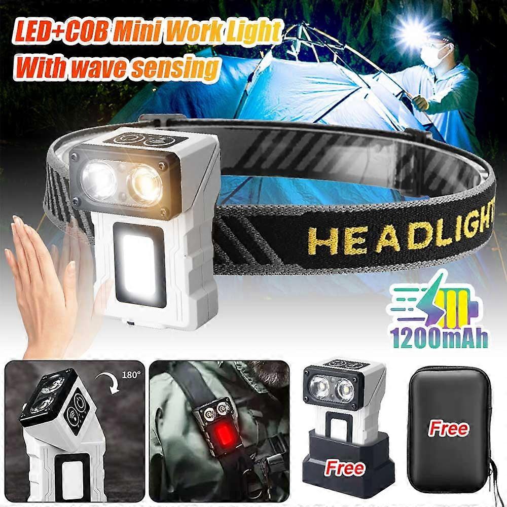 VASTFIRE Gray Flashlight Headlamp with Charging Base, UV Bag, Data Cable, Headband, Color Box, 10 Light Modes, Waterproof & Portable for Camping,