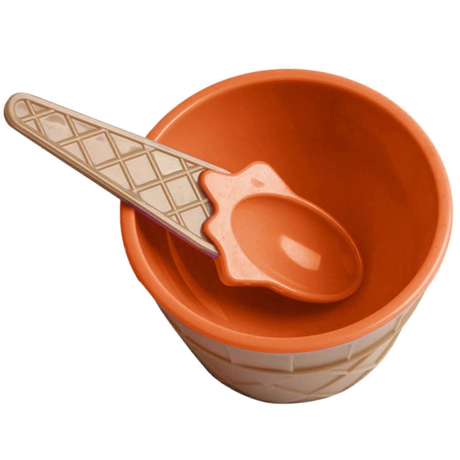 Mini Ice Bowl with Spoon, Dessert & Wedding Cup Set, Compatible with Poaug, for Ice Cream, Yogurt, Soup, Kids' Food, Orange