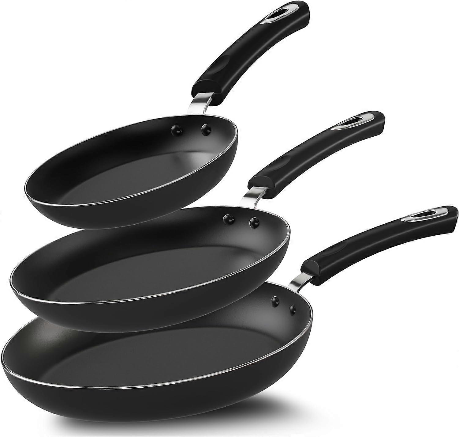 Nonstick Frying Pan Set - 3 Piece Induction Bottom - 8 Inches, 9.5 Inches and 11 Inches - (Grey-Black)