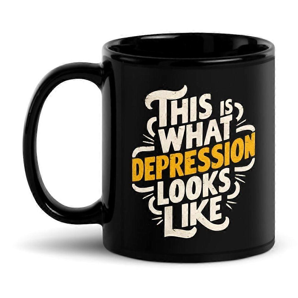 Funny Mental Illness Vintage Black Glossy Mug, This is What Depression Looks Like (11 oz)