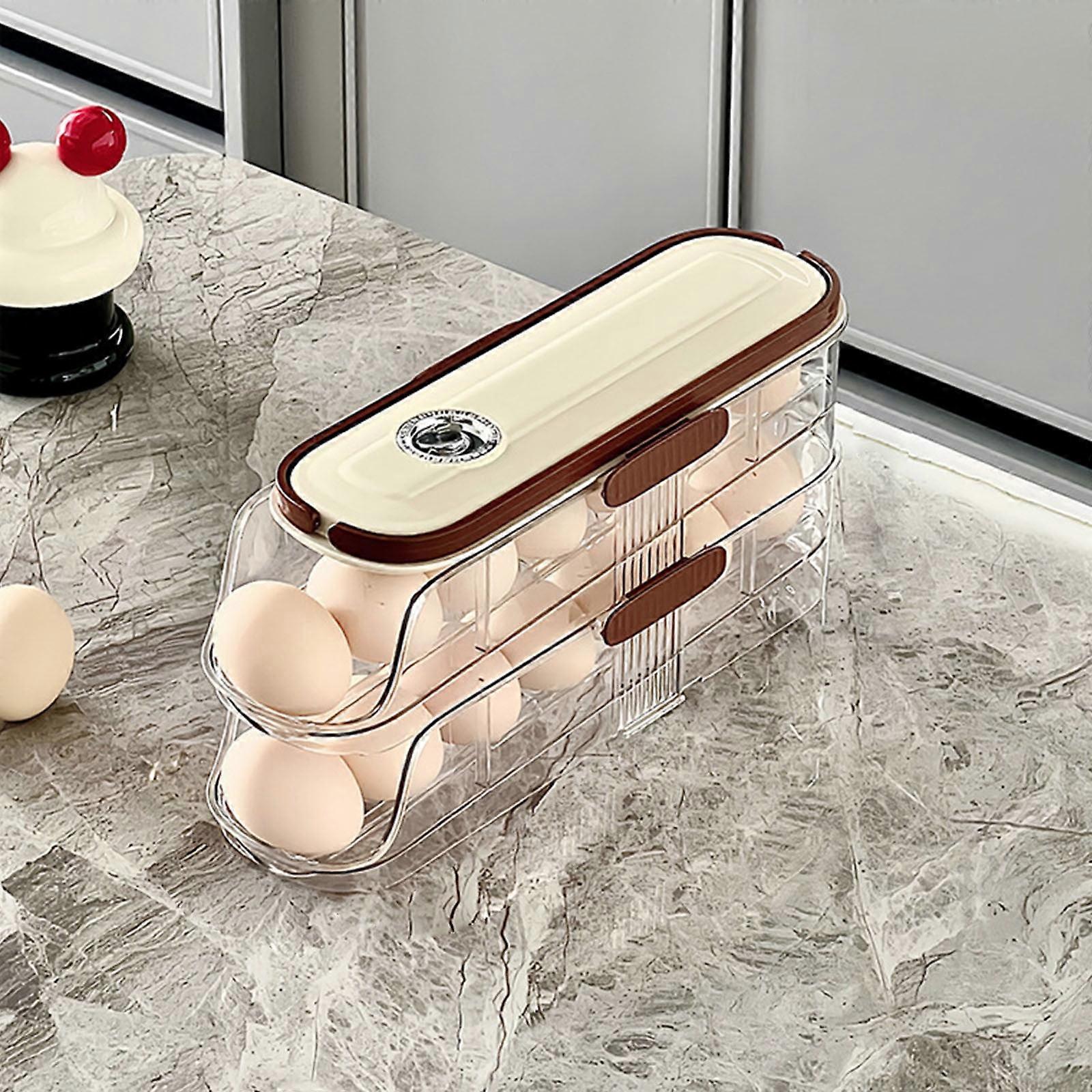 2-Tier Fridge Egg Holder, Auto-Scrolling Dispenser, Large Capacity 30-Egg Organizer, Space-Saving Rolling Rack, Transparent