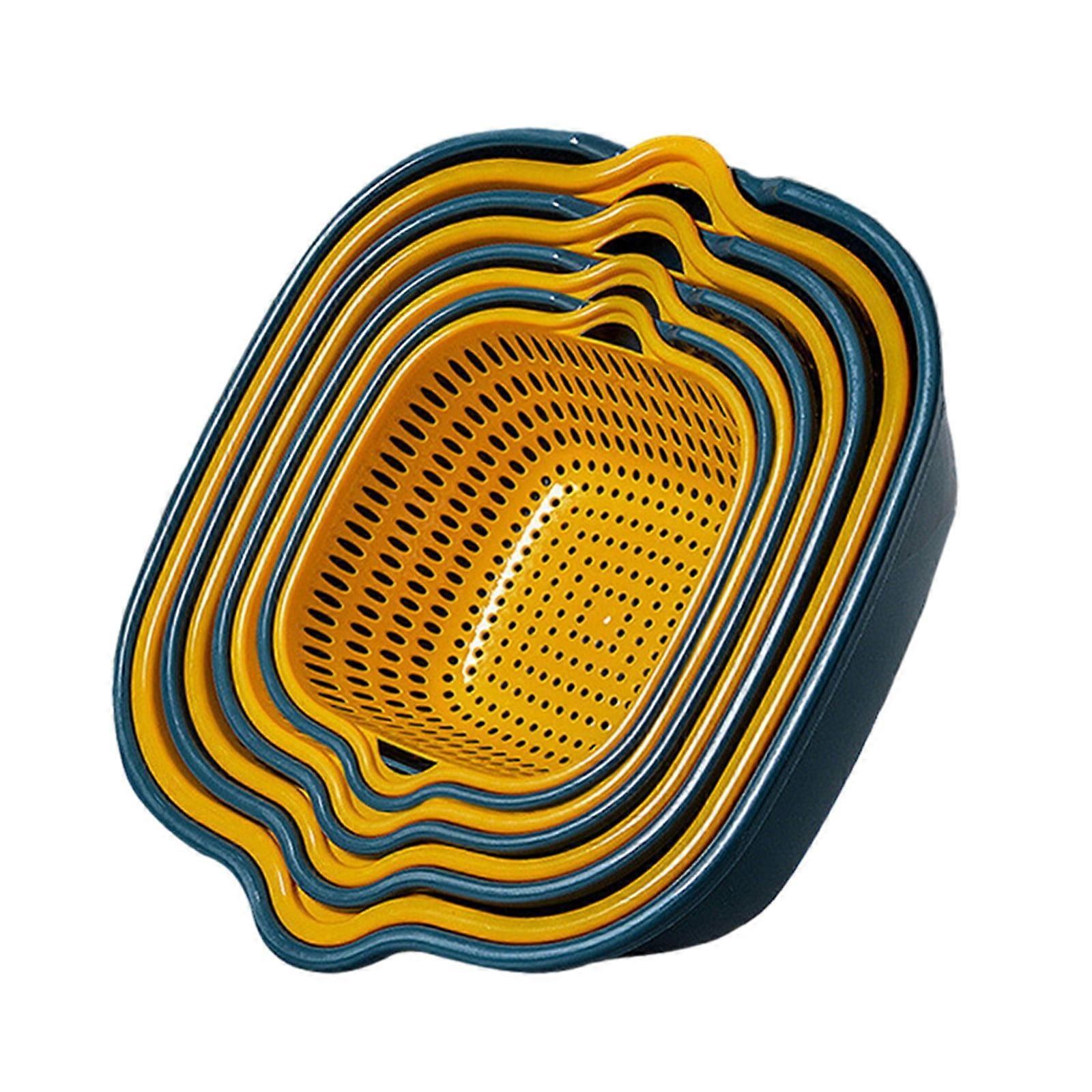 YOBOLK 8-Piece Kitchen Organizers & Storage, Double-Layer Wash Basket for Fruits & Vegetables, Multi-Functional Plastic Washing Basket (Blue)