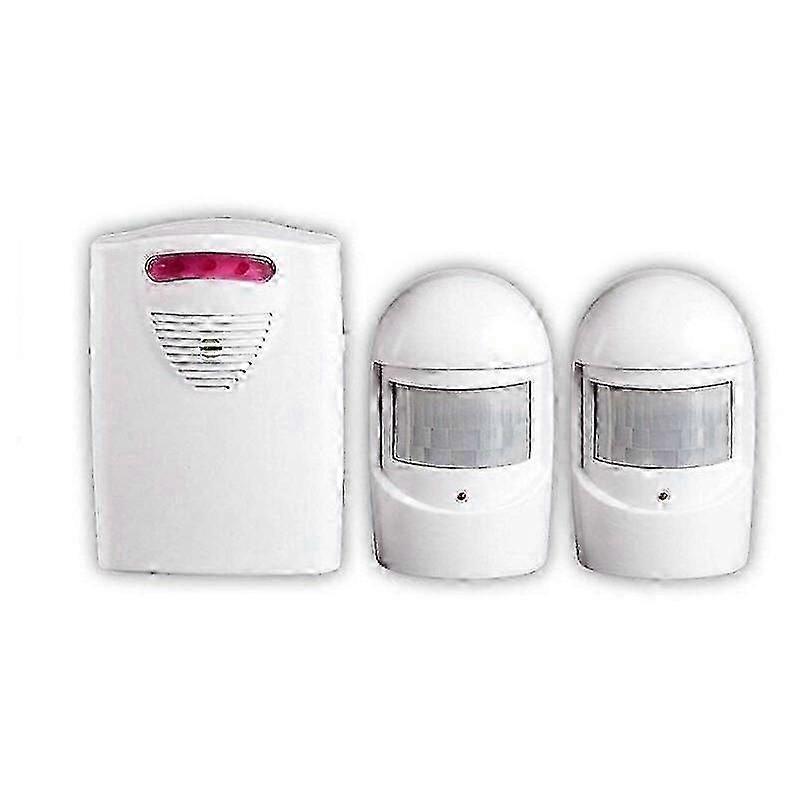 About this product: Reliable distance range: communication range up to 300m/ 1000ft (distance between sensors and receiver/alarm/chime) and detection range up to 8m (distance between sensors and objects detected). ADJUSTABLE VOLUME & MODE: Alarm volume is up to 100dB with 3 alert choices (high volume chime / low chime / alarm) and 3 mode choices (flashing / LED / sound & LED flash). DIFFERENT APPLICATIONS: Perfect for keeping you informed with a little warning before guests or intruders arrive. You can expand the alarm system for your home with up to 5 sensors or 5 receivers for your request. Installation Tips: Keep the PIR sensors in a clear path to the receiver and don't place the sensors where the wind will move them or change their detection angles, so you can get the best performance. Power supply: You can use 3 x 1.5V type C batteries (not included) or AC adapter (not included) for the receiver, and 3 x AAA batteries (not included) for the sensors. Never use type C batteries and AC adapter at the same time. Size:1 Receiver with 2 Motion Sensors | Color:White Driveway Security Alarm Kit. The Driveway Alarm provides a convenient and cost-effective way to alert you when someone is inquiring. When an object is detected, the PIR sensor sends a signal to the receiver up to 300 meters away and you will be informed and safe. Specifications: Operating distance: 300m (in the open air without obstacles). Motion detection range: 5-8m. Volume: 100dB (within 5m) PIR detection angle: 45 degrees. Protection class (PIR sensor): IP44. Power supply (receiver): 3 x 1.5V type C batteries / DC 6V adapter (not included). Power supply (PIR sensor): 3 AAA batteries (not included). Note: Do not mount the PIR sensor in direct sunlight (the PIR detects moving heat sources) or in a location affected by wind. Avoid mounting the PIR sensor and receiver near any metal objects. When installing the sensor outdoors, it is best to mount it in a shaded and protected location to minimize temperature changes. The receiver's ringtone may be affected by metal constructions, walls, and other devices with the same frequency. Contents: 1 receiver. 2 PIR sensors. 1 user manual (French not guaranteed). 4 dowels and screws.