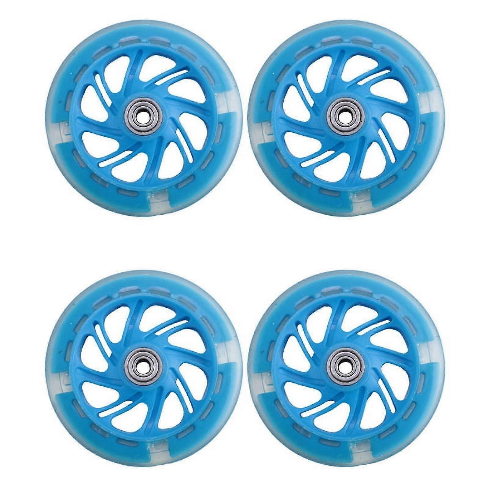 2Pair 120mm Children Scooter LED Lights Flashing Wheels with Bearings Front/Rear LED Flashing Scooter Wheels,Blue