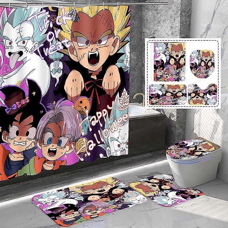 Dragon Ball HD Print Waterproof Polyester 4-Piece Shower Set: 72"x72" Curtain, Square & U-Shape Mats, Toilet Cover, Non-Slip