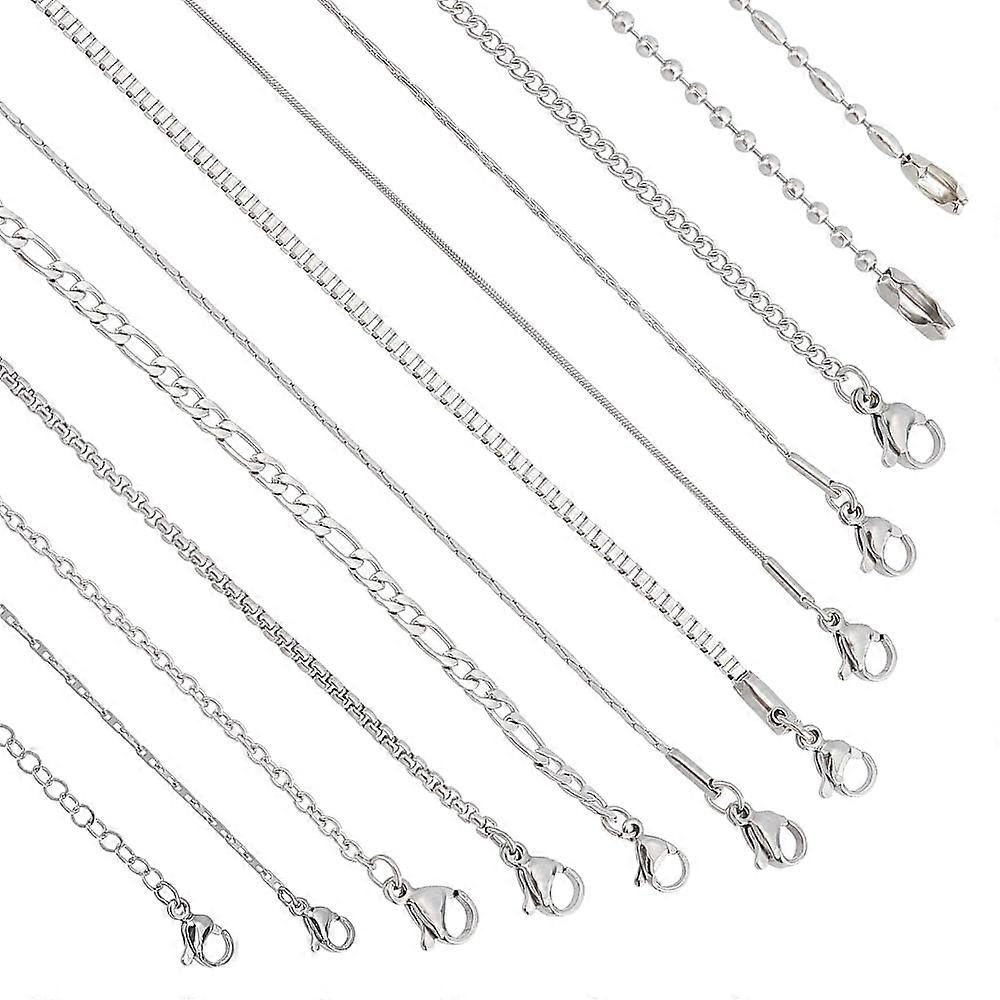 304 Stainless Steel Chain Necklaces with Lobster Claw Clasps Stainless Steel Color 12strands/set