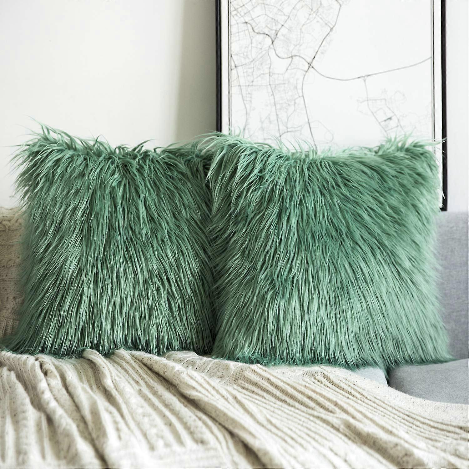 Phantoscope Merino Style Faux Fur Series Decorative Throw Pillow Cover, 18" x 18", Green, 2 Pack