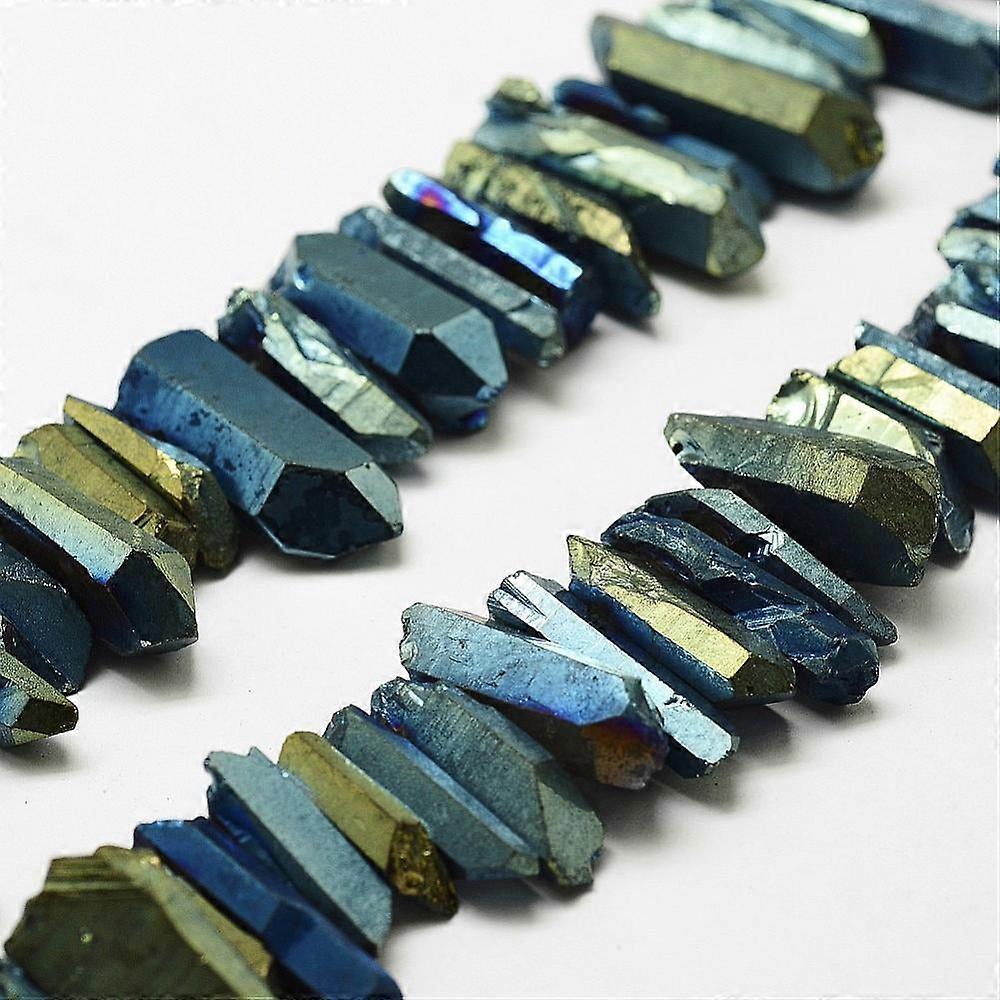 1Strand Electroplated Natural Quartz Beads Tusk Shape Green Plated Dyed Dark Slate Gray 7~15x18~60mm 46pcs/strand 16 inch