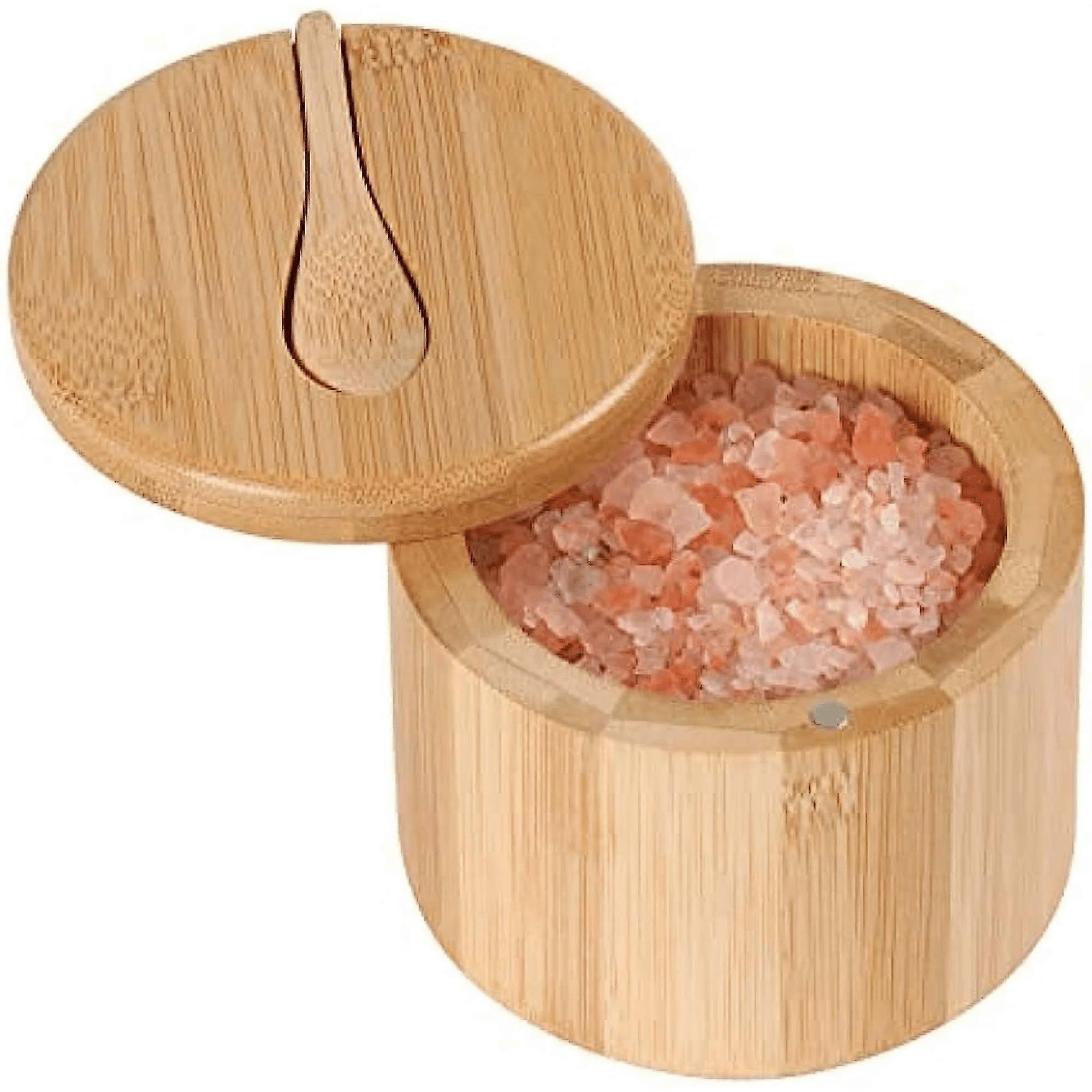CNKOO Bamboo Salt Cellar with Swivel Magnetic Lid, Elegant Container for Salt, Pepper, Spices, Bath & Sea Salt