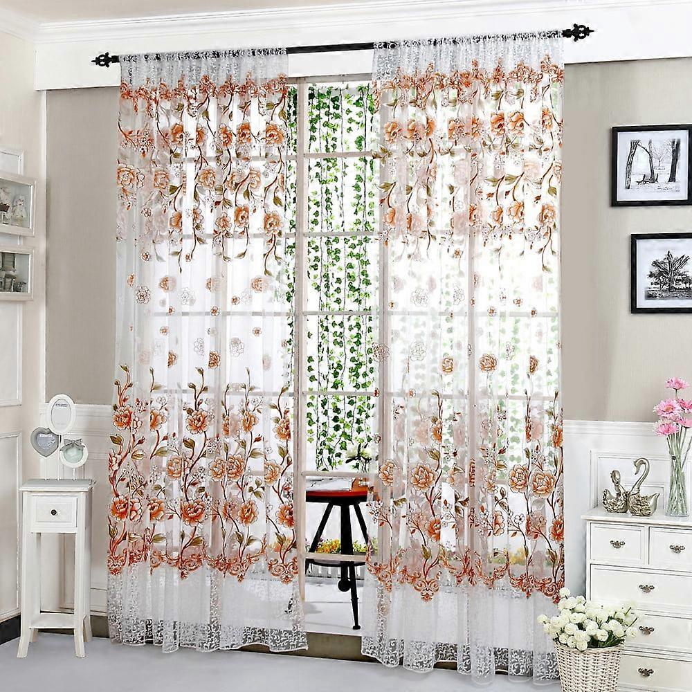 Begine Blackout Curtains Clearance, Peony Sheer Curtain Tulle Window Treatment Voile Drape Valance 1 Panel Fabric,Brown,1 X Peony Curtain