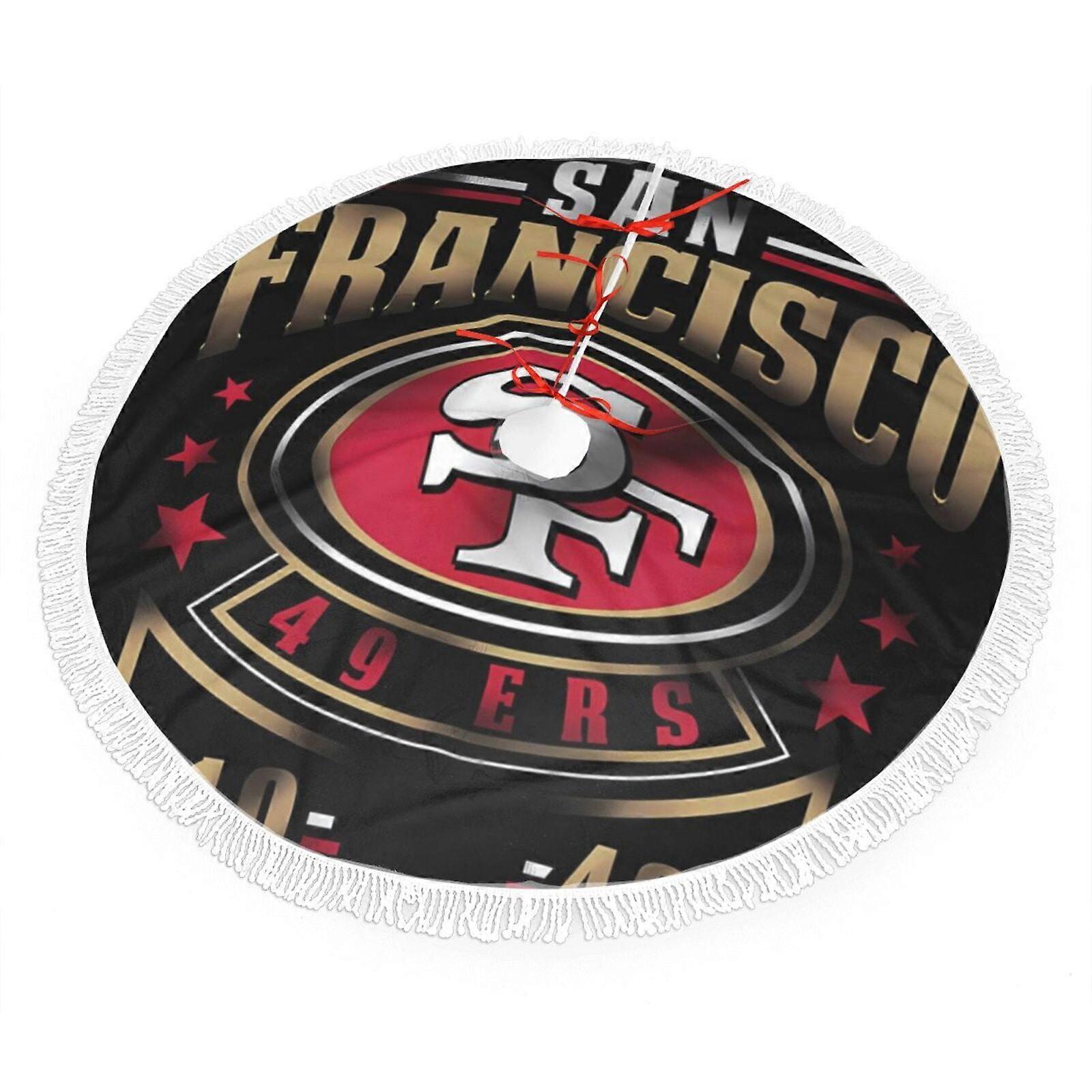 SF 49ers Christmas Fringe Tree Skirt, Football Team Colors, Easy Install, Great Gift for Fans (30" 36" 48")