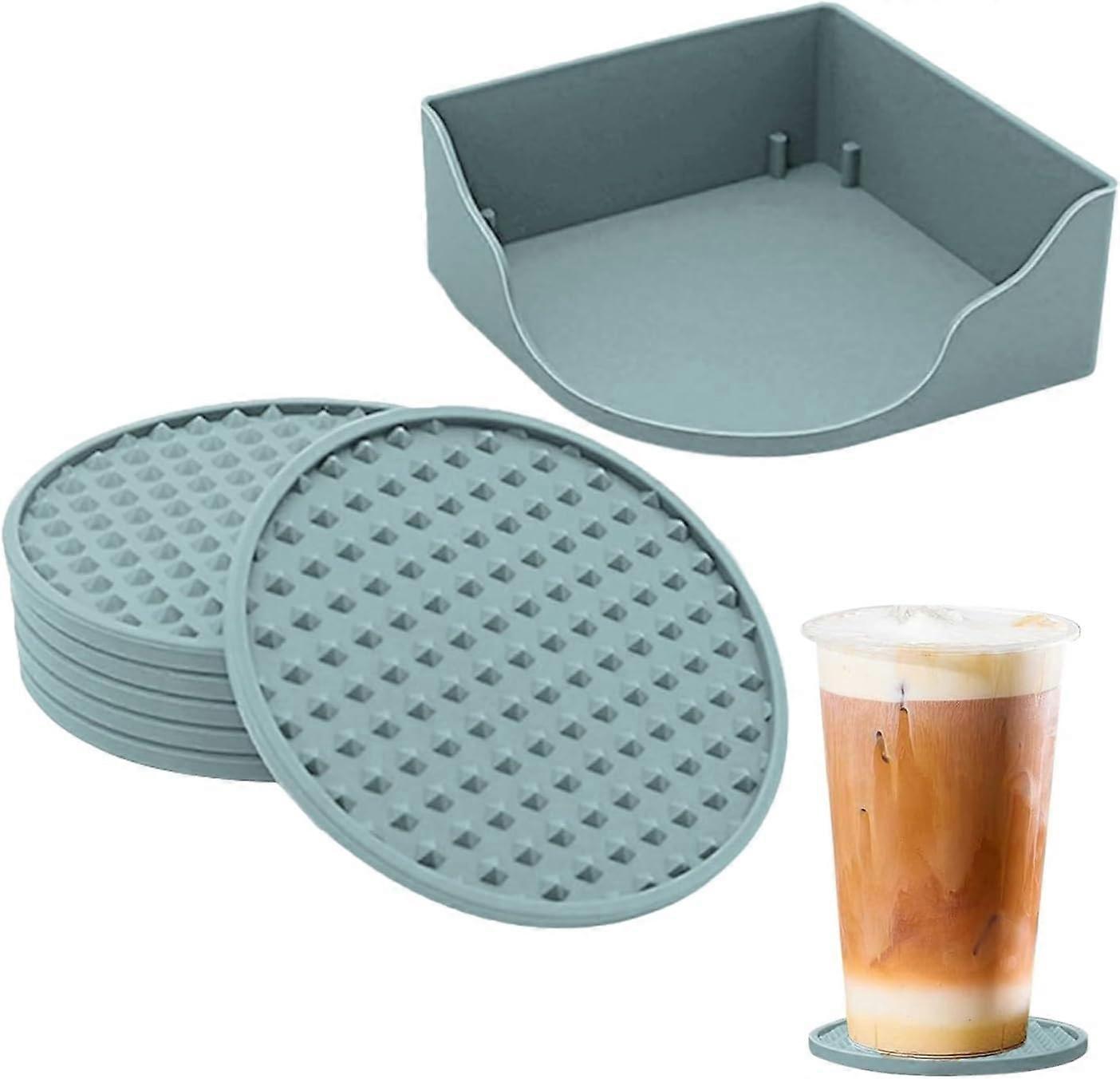 LINLIN 6pcs Silicone Coasters with Holder, Thickened & Drainable, Non-Stick, Easy Clean, Compatible with Cups for Hot & Cold Drinks (Grey)